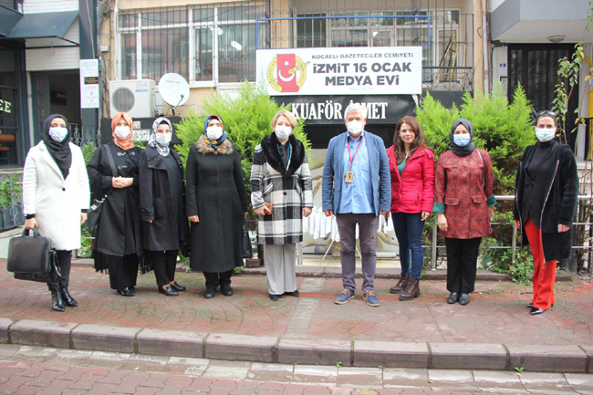 AK Parti Kocaeli İl Kadın Kolları Başkanı Yasemin Özdemir, Başkan Yardımcıları Pınar Atabay, Gül Yaşar Uçar, Şafak Durak, Elif Tarakçı Uzan ve Yönetim Kurulu Üyeleri Necla Timur, Selda Çiftçi, 10 Ocak Çalışan Gazeteciler günü nedeniyle 16 Ocak Medyaevi’ni ziyaret etti. AK Parti Kocaeli İl Kadın Kolları Başkanı Yasemin Özdemir, 16 Ocak Medyaevi'nde Kocaeli Gazeteciler Cemiyeti Başkanı Cemal Kaplan ile görüşerek, tüm gazetecilerin gününü kutladı. Özdemir ziyarette Kaplan’a çiçek takdiminde bulundu.