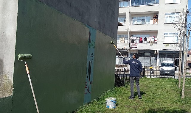 Çayırova Belediyesi Park ve Bahçeler Müdürlüğü ekipleri, ilçedeki parkların duvarlarında bulunan yazıları silerek, görüntü kirliliğinin önüne geçmiş oluyor.