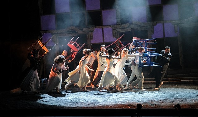 Dünya edebiyatının başyapıtlarından biri olan Tolstoy imzalı “Savaş ve Barış” adlı oyunu sahneye taşıyan Kocaeli Büyükşehir Belediyesi Şehir Tiyatroları, bu yıl yirmi sekizincisi düzenlenen İKSV’nin (İstanbul Kültür Sanat Vakfı) üstlendiği ve dünya tiyatrolarının da sahne aldığı festivalde iki temsille seyirci karşısına çıkarak göz kamaştırdı. Türk tiyatrosunun en önemli yönetmenlerinden olan Mehmet Birkiye’nin yönettiği Savaş ve Barış adlı oyununun prömiyeri 27 Mart 2024 tarihinde gerçekleştirilmişti. Oyunun dekor tasarımı Efter Tunç, kostüm tasarımını Çevren Sarayoğlu, ışık tasarımını Cem Yılmazer, müziklerini Fırat Akarcalı koreografını ise Tuğçe Ulugün Kaya tarafından sahneye taşınmıştı.