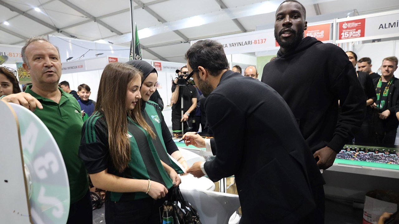 Uluslararası 15. Kocaeli Kitap Fuarı, tüm renkleriyle sürüyor. Söyleşilerden imza gününe, yarışmalardan panellere kadar birçok etkinliğin yer aldığı kitap fuarında bir hafta geride kaldı. Fuarın en renkli stantlarından olan Kocaelispor standı yeşil-siyahlı ekibin teknik direktörü Selçuk İnan, kaleci Gökhan Değirmenci ve Malili futbolcu Massadio Haidara’yı ağırladı. Teknik direktör ve futbolcular, kurulan dev ekran önünde önce Kocaeli taraftarların büyük ilgi gösterdiği bilgi yarışmasına katıldı. Yarışmayı kazanan 3 taraftara forma hediye edildi. Şanslı taraftarlar formalarını Selçuk İnan ve futbolculara imzalatma imkânı buldu.