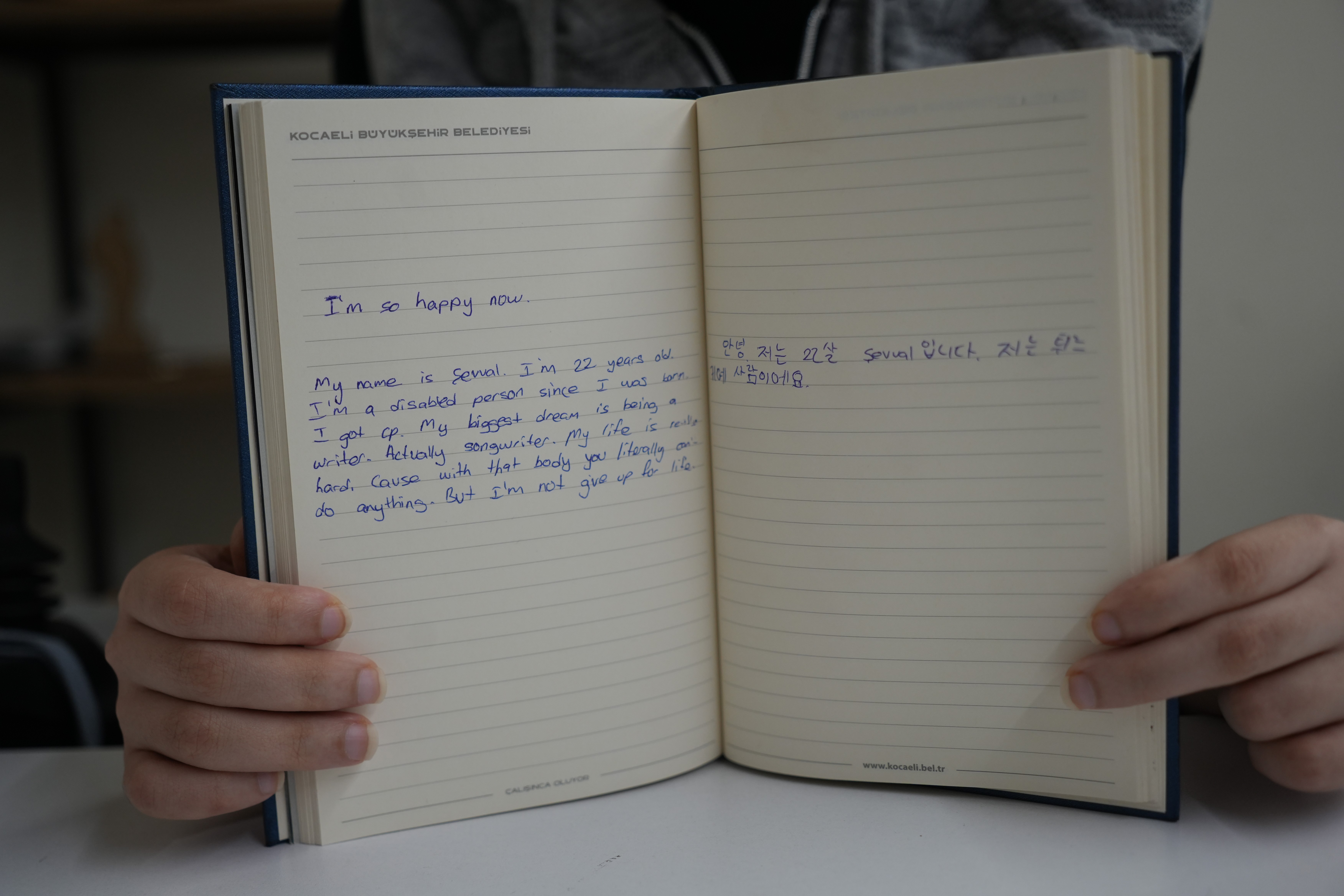 Engellilere karşı bakış açısının değişmesi gerektiğini vurgulayan Gerz, "Biz acınacak insanlar değiliz. Sadece olduğumuz gibi görülmeyi istiyorum" dedi. Gonca Engelsiz Yaşam Merkezi'nde Engelli İstihdam Birimi'nde eğitmenlik yapan Elif Tarakçı Uzan ise Şevval'in merkeze başladığından bu yana büyük ilerleme gösterdiğini söyledi. Şevval'in yazma yeteneğini ve yabancı dil bilgisini fark ettiklerini belirten Uzan, şunları kaydetti, "Genelde eğitimin sonunda tüm arkadaşlarıma mülakat teknikleri, nezaket kuralları, CV hazırlama gibi konularda detaylı bilgi veririm. Her dersin sonunda da bir kitap okuma etkinliği yaparız. Bununla birlikte, 'farkındalık nedir, nasıl yazarız, kendimizi yazarken nasıl ifade ederiz' gibi konuları konuşuruz. Bu süreçte Şevval defterini gösterdi. Korece ve İngilizce yazdığını, Korece bildiğini söyledi. İngilizce yazmayı tercih ettiğini, bu şekilde kendini daha korunaklı hissettiğini belirtti. Yazılarından birini bana gösterdiğinde okudum. Bunun üzerine, 'Bu konuda bir hedefin ya da planın var mı?' diye sordum. 'Aslında ben yazıyorum hocam, İngilizce yazıyorum' dedi. 'Bu yazılar, farkındalık oluşturabilecek bir kitap haline gelebilir ve biz de Gonca olarak, hocalarımızla birlikte sana destek olalım' dedim kabul etti."