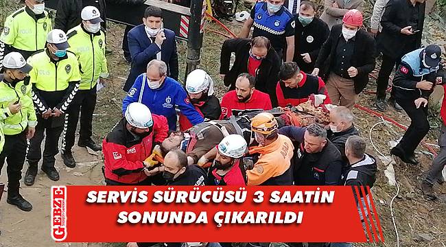 Gebze'de 2 kişinin hayatını kaybettiği, 20 kişinin de yaralandığı öğrenci servisi kazasında sürücü de 3 saat sonra sıkıştığı yerden çıkarıldı.