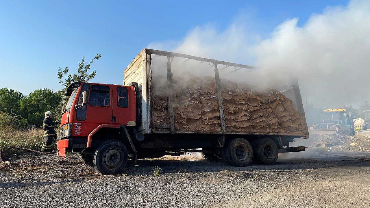 Talaş yüklü kamyon alevlere teslim oldu