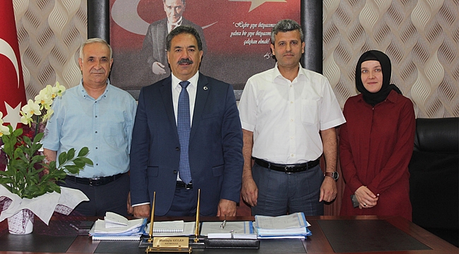 Tapu ve Kadastro Teşkilatının 171. Kuruluş Yıldönümü münasebetiyle Gebze Tapu Müdürü Talip Kutluay ve müdürlük çalışanları Gebze Kaymakamı Mustafa Güleri'i ziyaret etti.