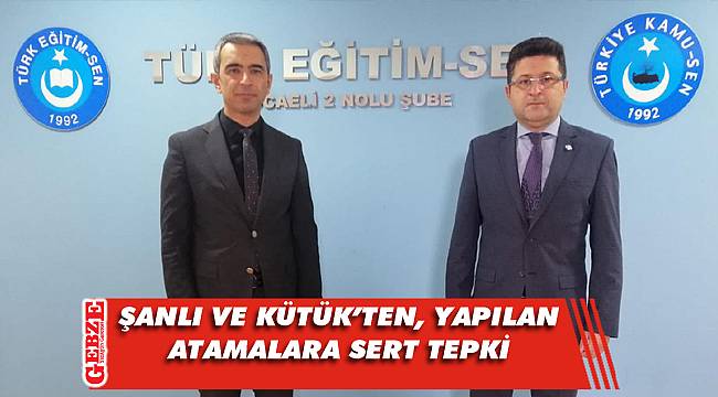 Türk Eğitim Sen Kocaeli’nden Kocaeli’nde yapılan atamalara sert tepki. Türk Eğitim Sen Kocaeli 1 No’lu Şube Başkanı Şanlı ve Türk Eğitim Sen Kocaeli 2 No’lu Şube Başkanı Orhan Kütük, konu hakkında ortak bir yazılı açıklama yaparak şunları dile getirdi; “Türk Eğitim-Sen Kocaeli 1 ve 2 Nol’u Şube Başkanları olarak bir kez daha çağrıda bulunuyoruz: Bu yapılanlar eğitim adına çok vahim sonuçlar doğurmakta, liyakat, meşruiyet, hakkaniyet ilkeleri yok sayılmakta; 15 Temmuz öncesi yapılan hataların, paralel devlet algısının yeni versiyonu olarak karşımıza çıkmaktadır. Yapılan hiçbir atama mevzuata uygun değildir. Atama şartlarını taşımamaktadır. Öncelikle şu sorunun cevabını gerçekten çok merak ediyoruz; Kocaeli'de eğitim yöneticilerini kim belirliyor? Vali bey mi, İl Milli Eğitim Müdürü mü, Siyasi Parti İl Başkanı mı, ismi hep eğitimle anılan bir milletvekili mi, yoksa Malum bir sendikanın başkanı mı? Diğer bir merak ettiğimiz husus ise, bu belirlemede kriter nedir acaba? Tarikat-cemaat üyesi olmak mı, belirli bir malum sendikanın üyesi daha doğrusu yöneticisi olmak mı?
