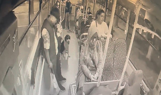 Gebze’de durakta duran halk otobüsüne köpek bindi. Köpeğin tebessüm ettiren yolculuğu güvenlik kamerasına yansıdı.