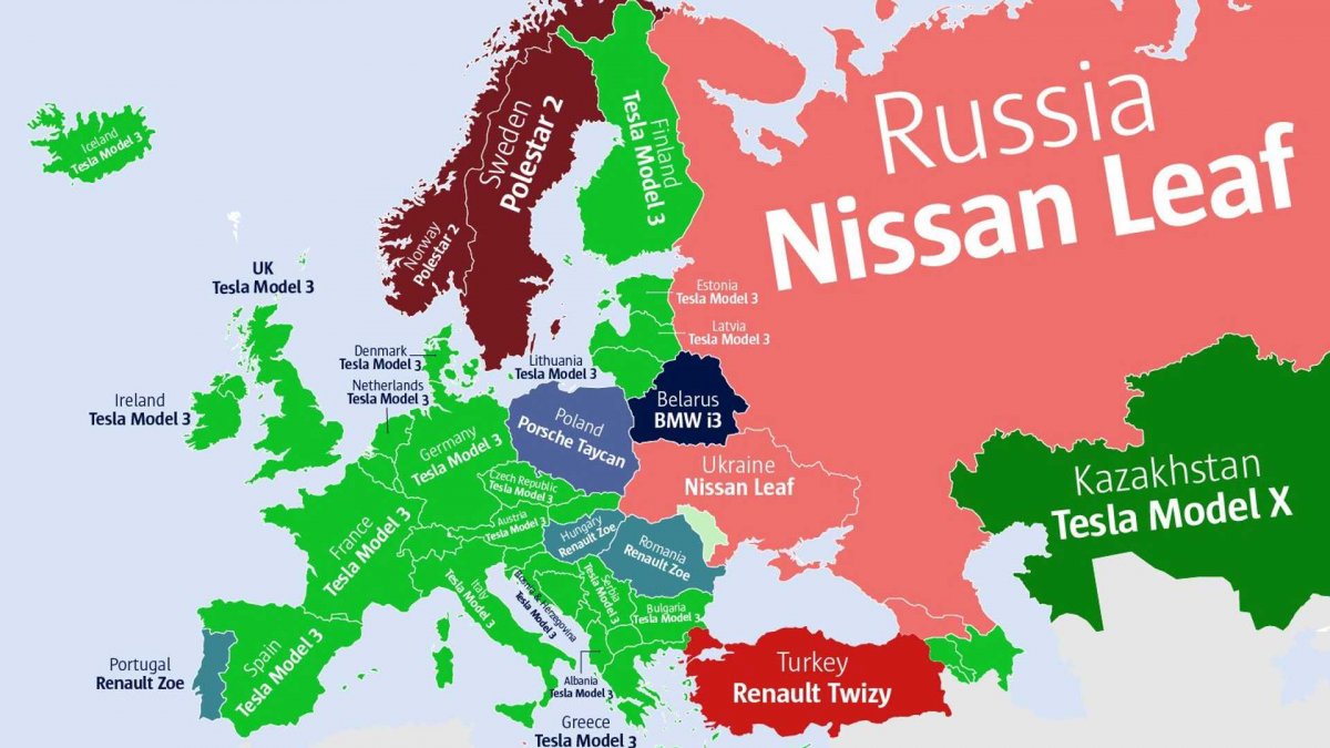 Avrupa bölgesine bakış attığımızda da Tesla Model 3'ün yine en popüler elektrikli otomobil olmaya devam ettiğini görüyoruz. Rusya ve Ukrayna'da en popüler elektrikli otomobil Nissan LEAF olurken, ülkemizde ise Renault Twizy en çok arananlar listesinde ilk sırada. Renault Twizy, şu anda ülkemizde 186 bin liradan satılıyor. Asya haritasına bakacak olursak, Tesla Model 3 ile Model X'in en popüler araçlar olduğunu görüyoruz. Ancak haritada Çin'e yer verilmemiş. Bunun nedeni ise Çin'de oldukça fazla elektrikli araç markası var ve hangisinin popüler olduğunu tahmin etmek oldukça zor.