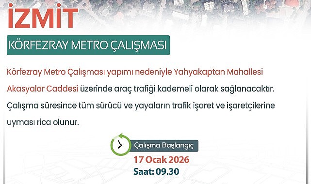 Körfezray Metro Projesi kapsamında yürütülecek altyapı çalışmaları nedeniyle Yahyakaptan Mahallesi Akasyalar Caddesi ve D-100 Yanyol trafiğe geçici olarak kapatılacak. Altyapı çalışmalarının güvenli ve planlı şekilde yürütülmesi amacıyla etaplar halinde uygulanacak düzenlemelerin proje takvimine uygun olarak tamamlanmasının ardından yollar yeniden trafiğe açılacak.