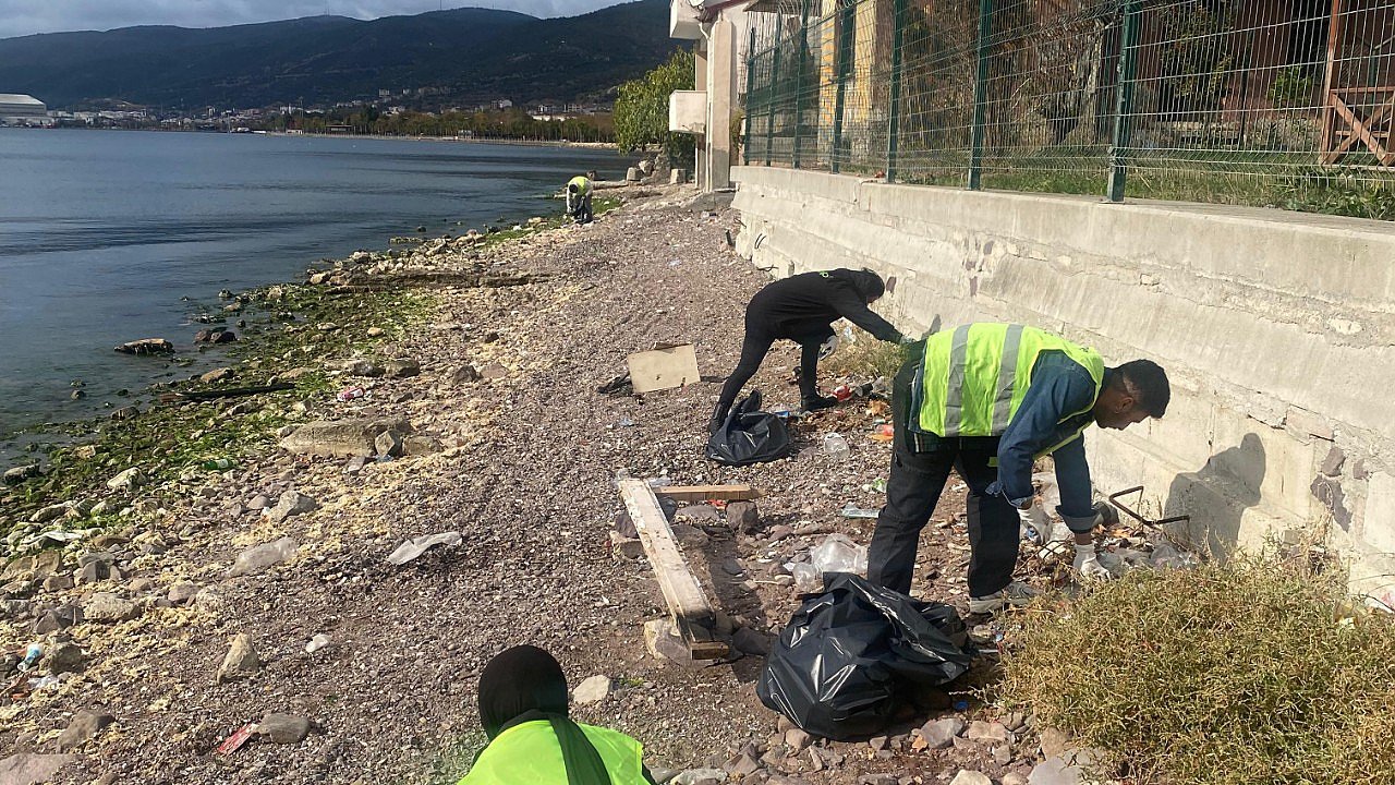 Yarımca Sahili'nde deniz kenarında temizlik çalışması yapıldı. Plastik ve cam atıklarla birlikte toplam 120 kilogram atık toplandı.
