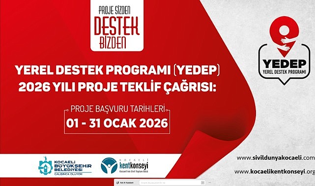 Kocaeli’de sivil toplumun güçlendirilmesi ve katılımcı yerel yönetim anlayışının yaygınlaştırılması amacıyla Kocaeli Büyükşehir Belediyesi ve Kocaeli Kent Konseyi tarafından hayata geçirilen Yerel Destek Programı (YEDEP) 2026 yılı proje başvurularını almaya devam ediyor. Kentlilik bilincinin artırılması ve katılımcılığın güçlendirilmesi ana temasıyla yürütülen program kapsamında sivil toplum kuruluşları, projelerini 31 Ocak 2026 tarihine kadar online başvuru sistemi üzerinden iletebilecek. Gönüllülüğün teşvik edilmesi, toplumsal dayanışmanın güçlendirilmesi, yerel değerlerin korunması ve tanıtılması, sürdürülebilir kalkınma ve kapsayıcılığın desteklenmesi programın öncelikli alanları arasında yer alıyor. 2022 yılından bu yana kesintisiz devam eden YEDEP ile kentte daha bilinçli, katma değeri yüksek ve iş birliğine dayalı projelerin hayata geçirilmesi hedefleniyor.